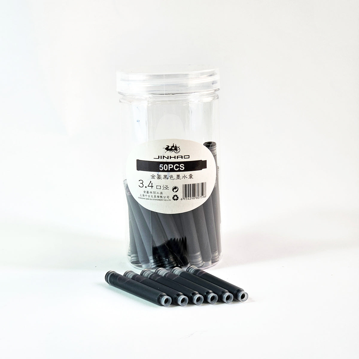 خراطيش حبر قلم حبر جاف جينهاو، مجموعة من 50 خرطوشة حبر قابلة لإعادة التعبئة، مقاس قياسي دولي، 3.4 مم